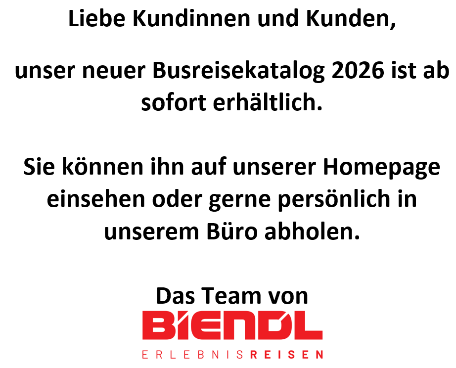 mit großer Freude präsentieren wir Ihnen unseren Busreisekatalog für das Jahr 2026 – Ihre Eintrittskarte zu unvergesslichen Tagesausflügen in der Region, Wochenendausflügen in ganz Deutschland oder auch mehrtägigen Reisen in Europa.